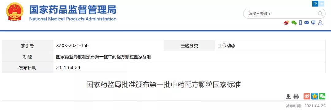 2021年4月29日,國家藥品監(jiān)督管理局批準頒布了首批160個配方顆粒品種國家標準,涉及約1/3的常用中藥材品種,設置6個月的過渡期,于2021年11月1日起正式實施。這標志著中藥配方顆粒試點工作的結束,備案管理實施在即。